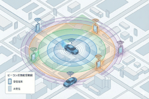 車両に搭載した近距離通信(ビーコン)で広告に接触したスマートフォン端末を特定します。