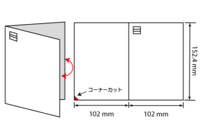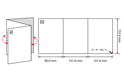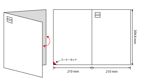 Z字型に三つ折りされた圧着はがきです。普通はがきの3倍、A4サイズに迫る情報量を掲載できます。多くの商品紹介や申込書などを一体化させたい場合に最適な、情報量の多いタイプです。